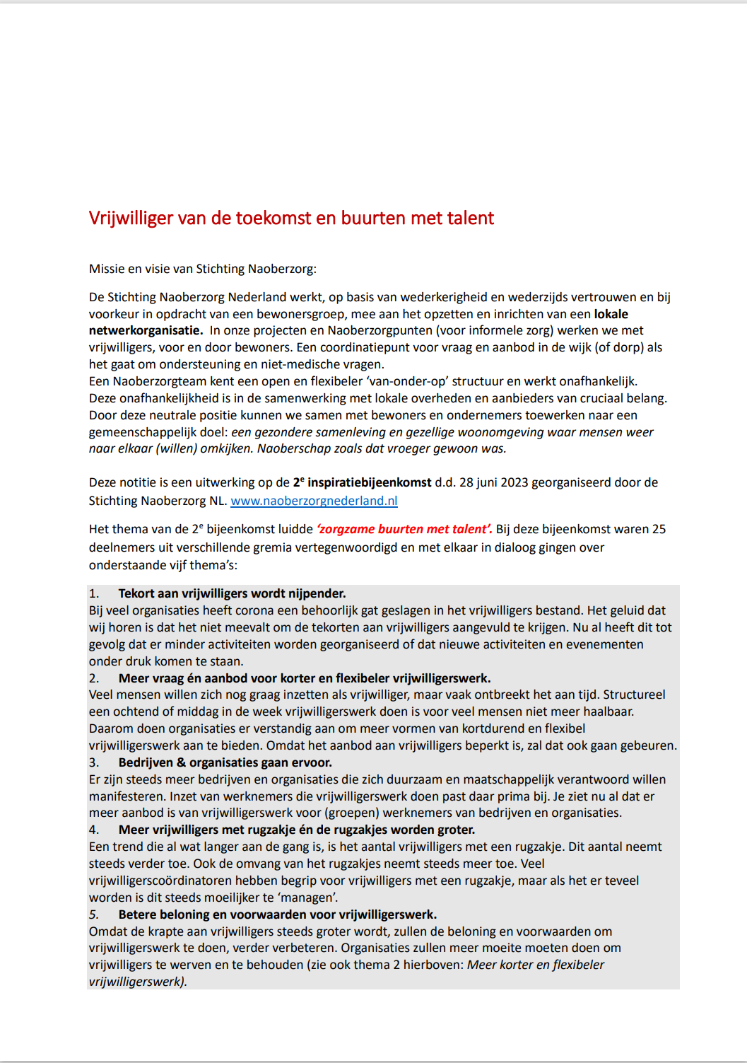 Hoe vrijwilligers de trainingen ervaren en welke thema's aan bod komen kunt u lezen in het 2e reisverslag Naoberzorg in de praktijk in de Norbertuswijk (zie onderaan foto).
